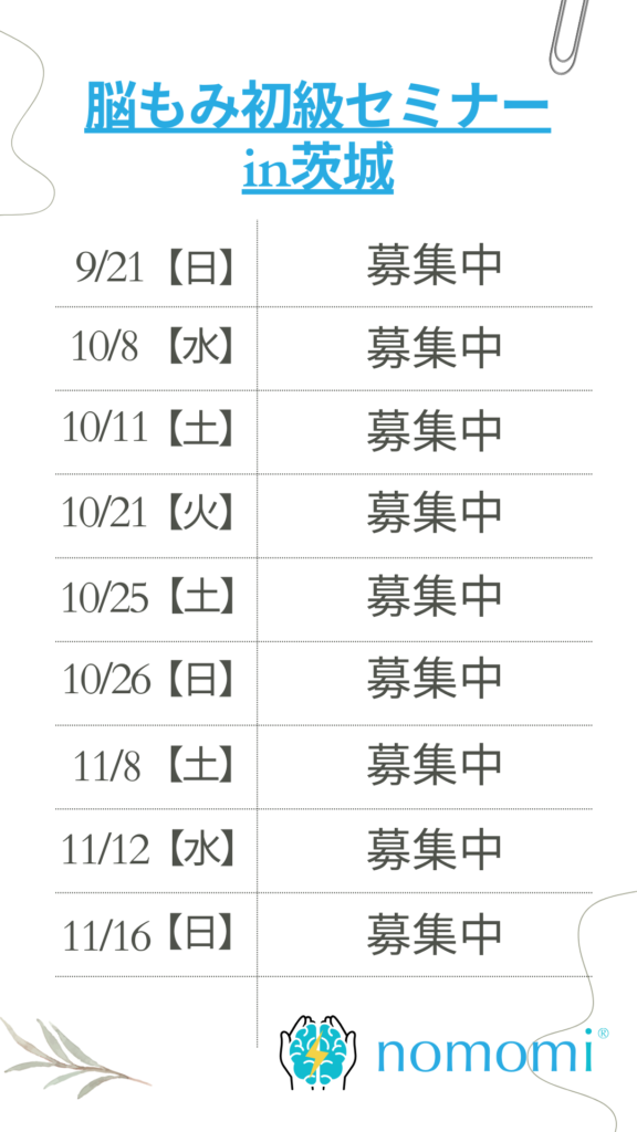 「大切な人に“やさしい手”を届けたいあなたへ」脳もみ初級セミナー in 茨城、募集中です!